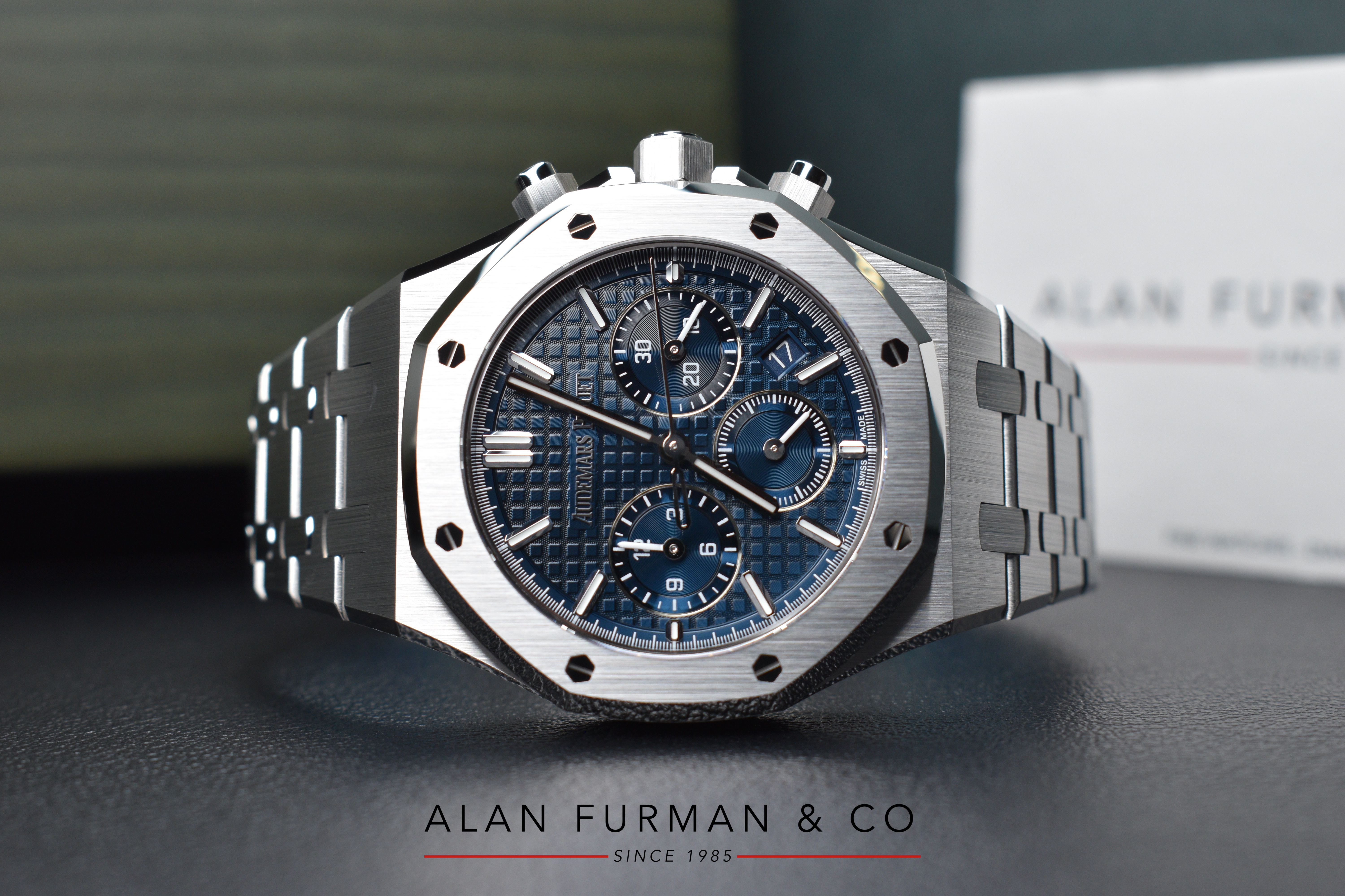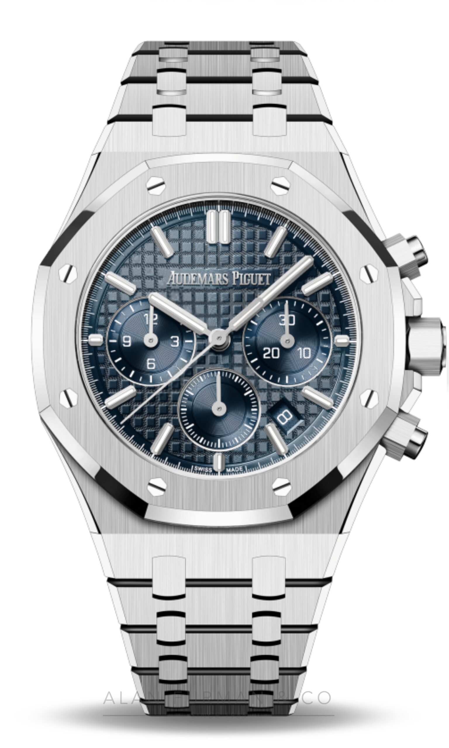 – White gold applied hour-markers and Royal Oak hands with luminescent coating