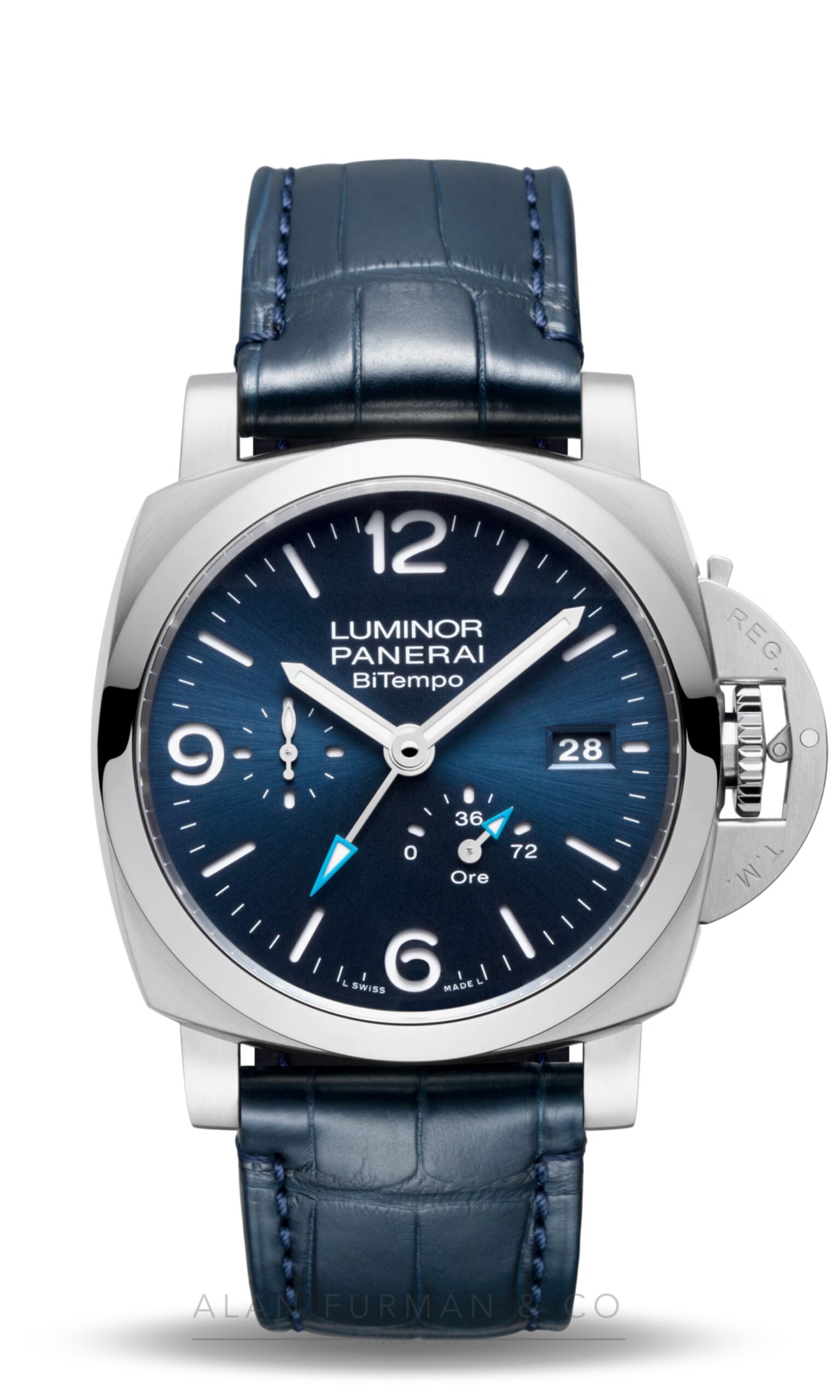Alan Furman & Company features authentic Panerai Luminor BiTempo (Ref. PAM01361). Every Panerai watch, along with Panerai Luminor BiTempo (Ref. PAM01361), we sell is guaranteed to be authentic. We have been selling Panerai Watches since 1985. We discount genuine Panerai watches including Radiomir, Radiomir 1940, Luminor, and Luminor 1950 models. We guarantee each watch is thoroughly inspected before being shipped to you. Our fine watch division offers great discounts on all Panerai watch models. Most Panerai’s are either stocked in our inventory or is readily available in a matter of days. We honor the manufacturer’s warranty on every watch that we sell. These watches will be accompanied by a warranty from Alan Furman & Co. which displays our written guarantee. Merchandise and watches may be returned to us for warranty repair or replacement. Items purchased from us that are not special orders may be returned unused for a full refund, less shipping costs. All returns must be made within 10 days of receipt.