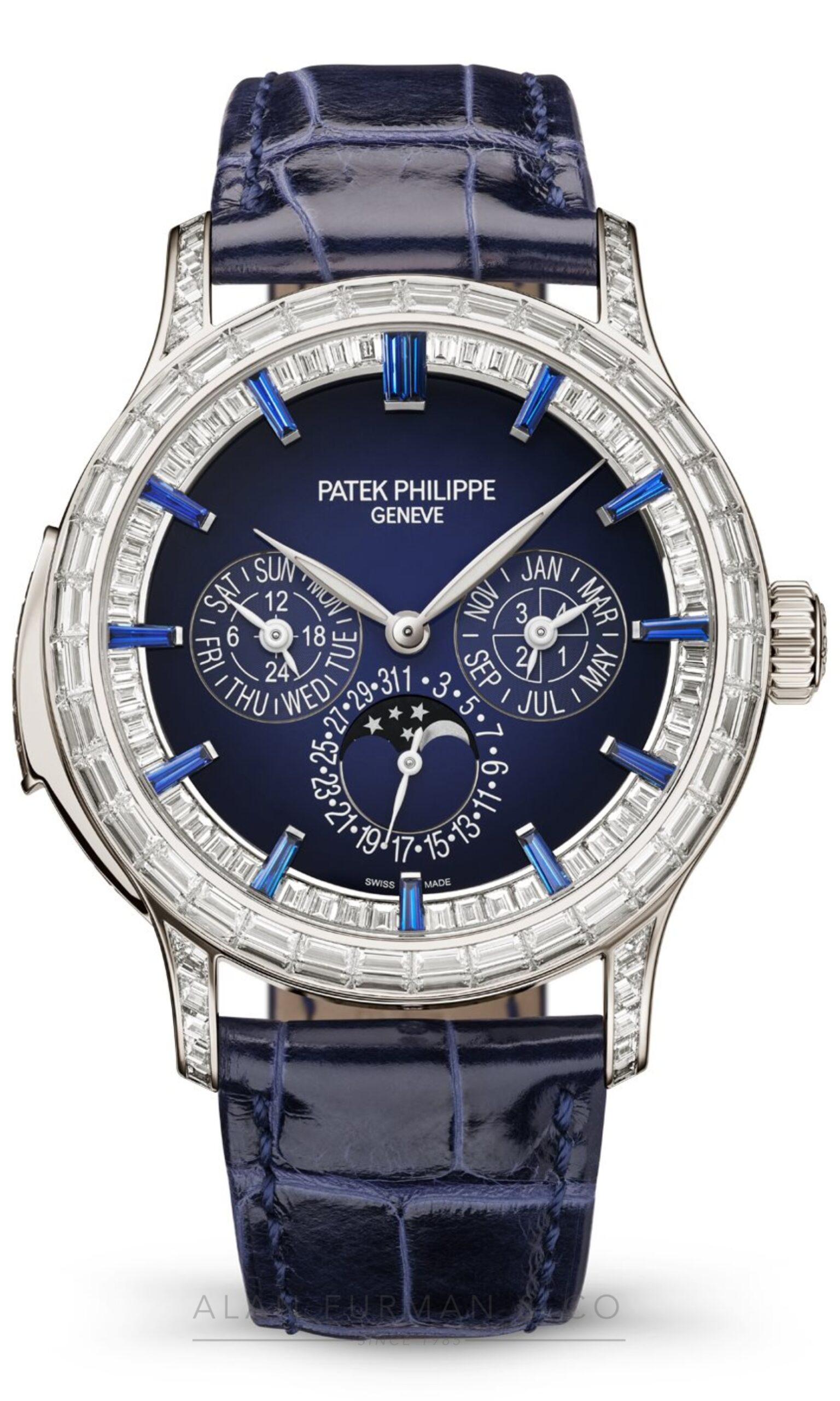 – Total of 228 baguette-cut diamonds (11.62 cts) and 13 baguette-cut sapphires (0.72 ct).